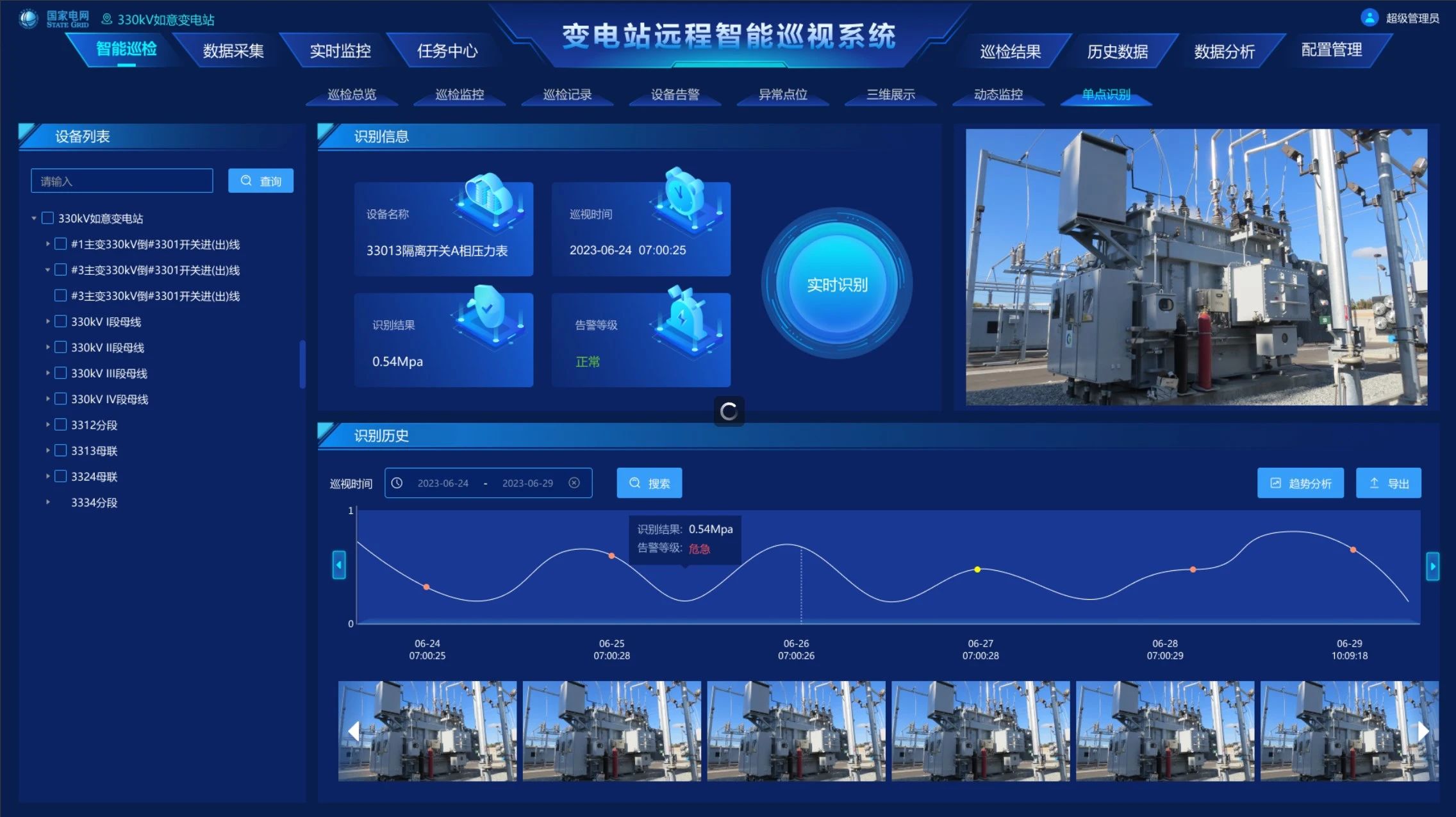 支持遠程監控設備云臺,對監控畫面進行放大、縮小、旋轉等操作,查看實時監控畫面、歷史回放,分析變電站的運行狀態,及時發現異常情況。