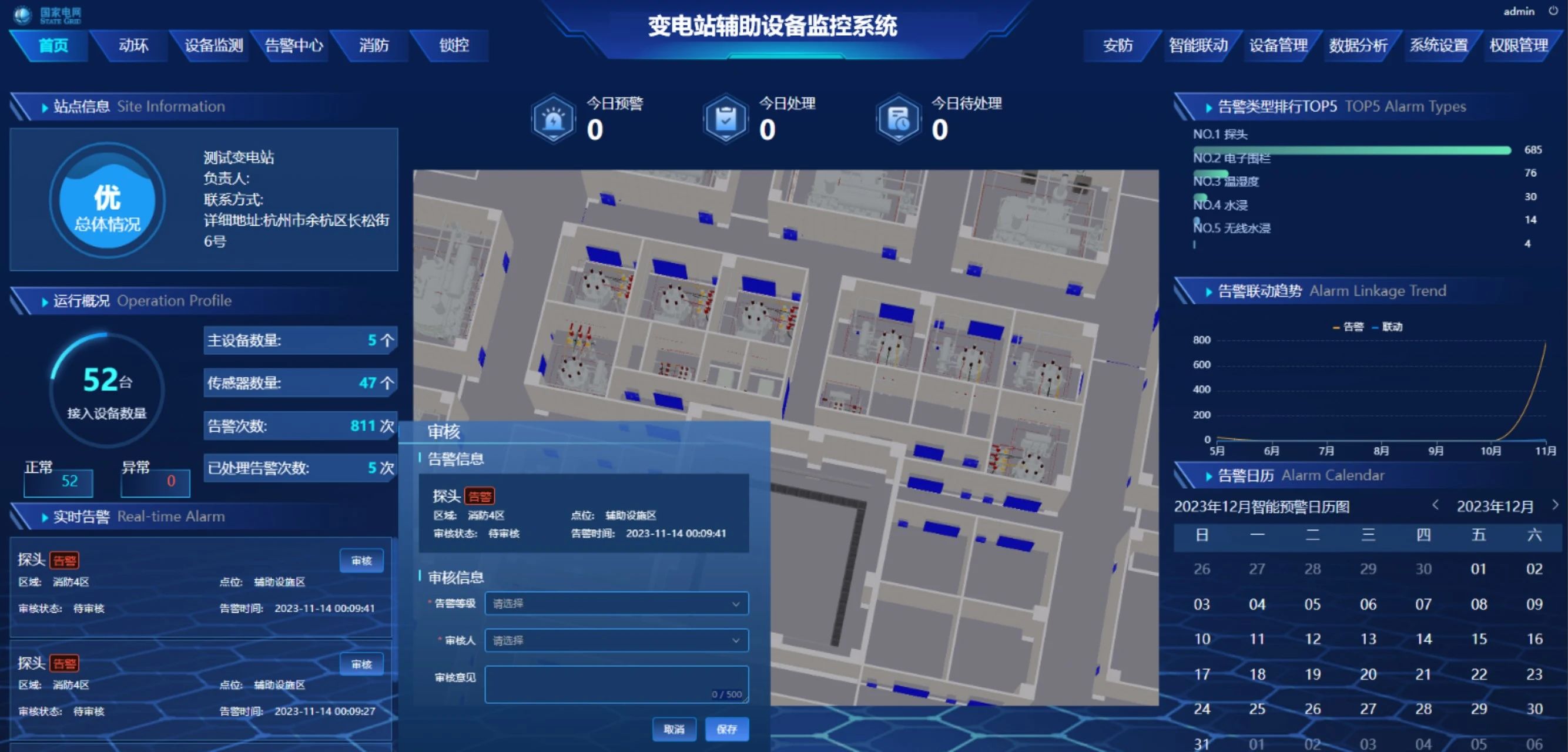 系統將變電站的各項運營信息匯聚成一張智能圖譜,包括任務統計、狀態統計、巡檢統計和告警列表等信息,構筑一個智慧綜合駕駛艙。