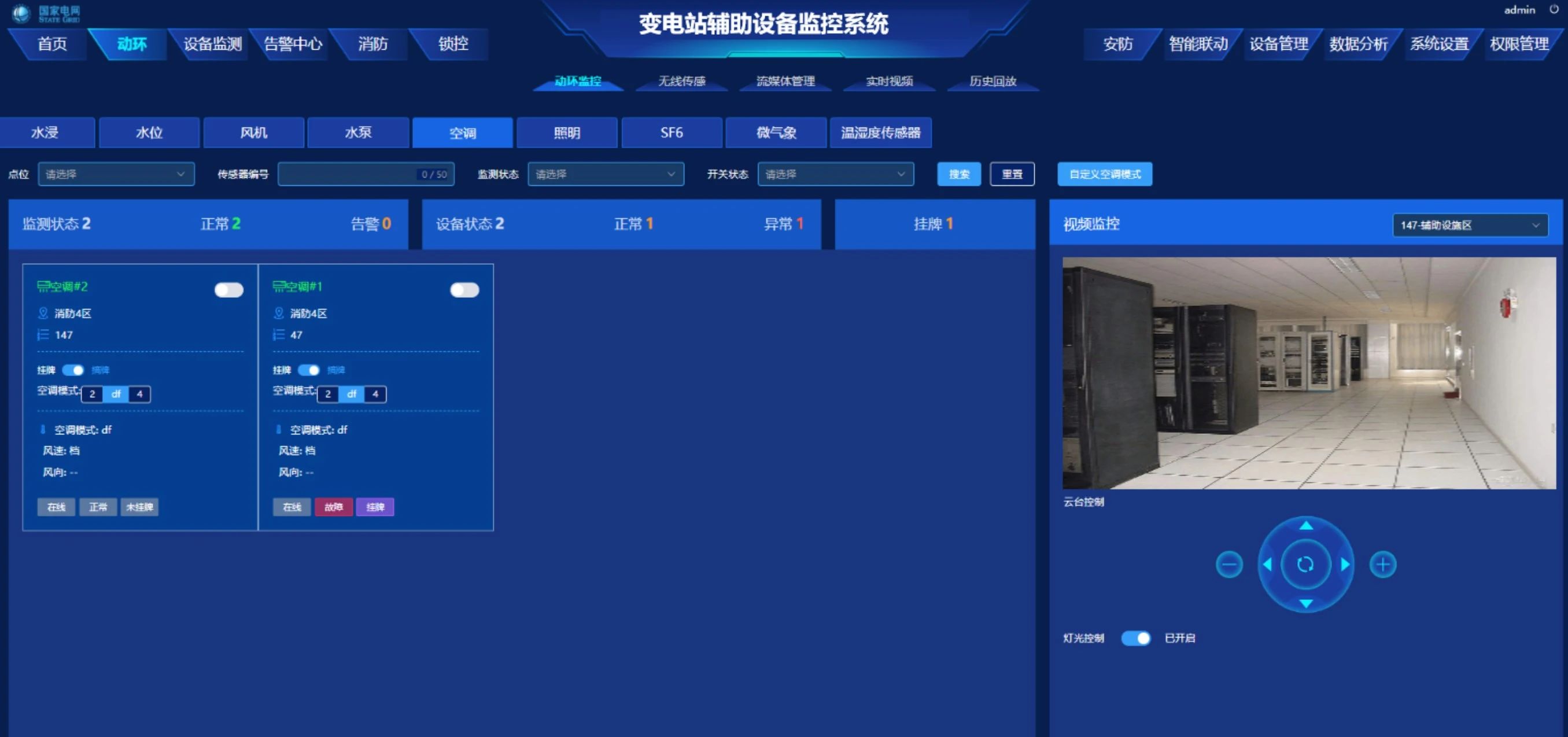 實時監測SF? 、O?氣體濃度、對水泵、空調、水浸、風機和照明等設備狀態與環境全面監控,確保設備正常運行,及時預警風險,提升設備管理效率。